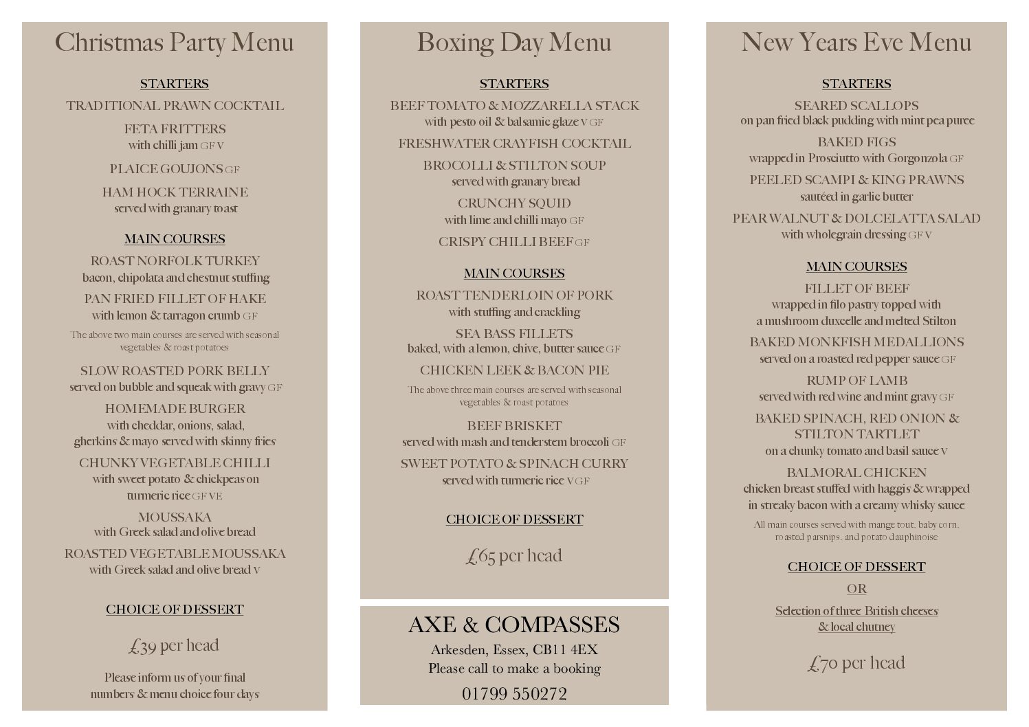 Celebrate the magic of Christmas at The Axe and Compasses, Arkesden, a cosy country pub full of festive cheer. Nestled in the heart of the village, our pub offers the perfect setting for Christmas parties, family gatherings, and seasonal dining. Enjoy delicious homemade festive menus, warming drinks by the fire, and a welcoming atmosphere that makes every occasion special. Whether you’re planning a traditional Christmas lunch, a relaxed get-together with friends, or a festive evening out, The Axe and Compasses is the ideal place to make your Christmas in Arkesden truly memorable.